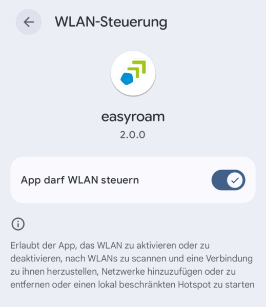 Ansicht der Berechtigung zur WLAN-Steuerung
